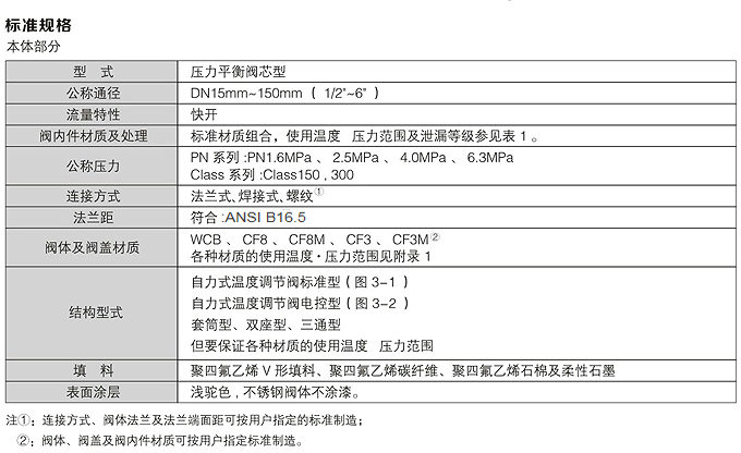 自力式溫度調(diào)節(jié)閥標(biāo)準(zhǔn)規(guī)格
