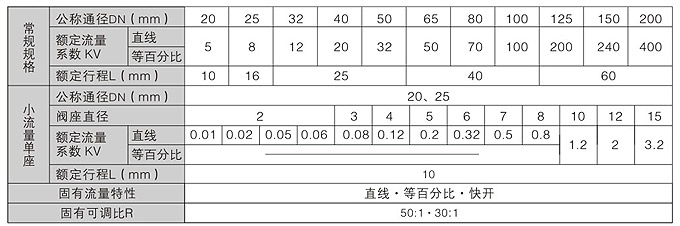 氣動襯氟單座調(diào)節(jié)閥額定KV及行程