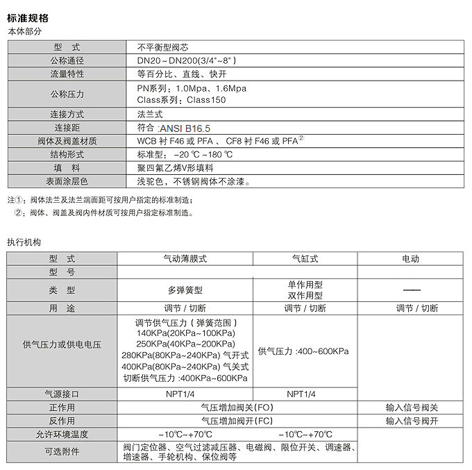 氣動襯氟單座調(diào)節(jié)閥標(biāo)準(zhǔn)規(guī)格