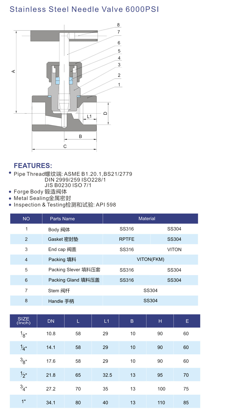 | SS304/SS316/316L