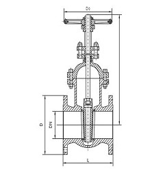 Z45H暗桿楔式閘閥主要外形尺寸:
