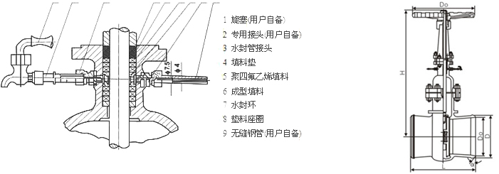 水封閘閥,真空水封閘閥尺寸結(jié)構(gòu)圖: