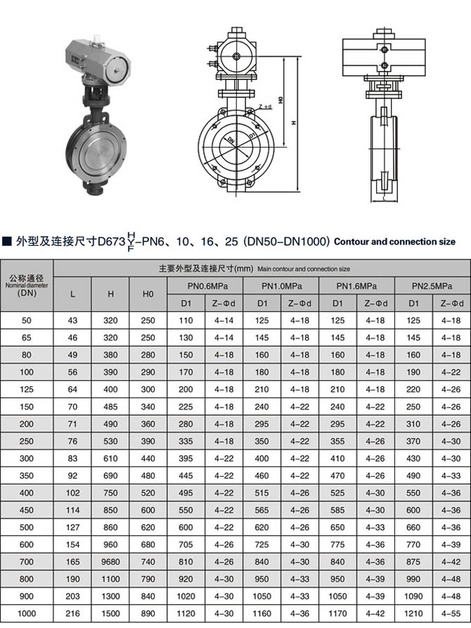 氣動硬密封蝶閥,雙偏心雙向壓金屬密封蝶閥相關(guān)尺寸圖: