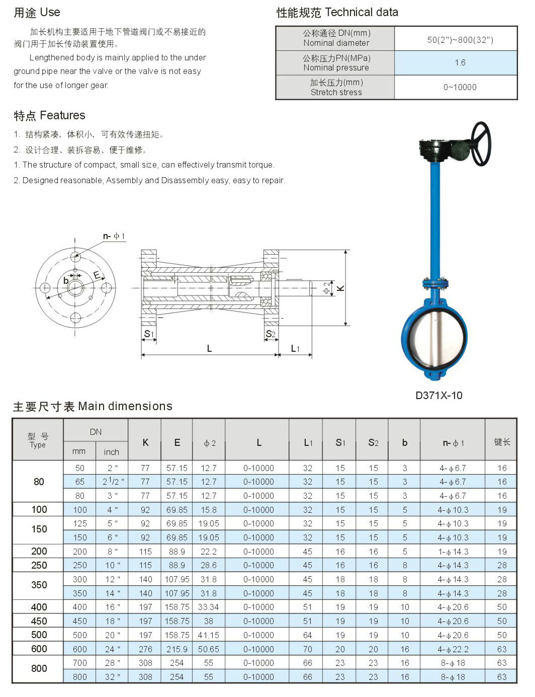 加長桿蝶閥適用于溫度≤80~120℃如食品、醫(yī)藥、化工、石油、電力、輕紡、造紙等給排水、氣體管道上作調(diào)節(jié)流量和截流介質(zhì)的作用。其主要特點為:
