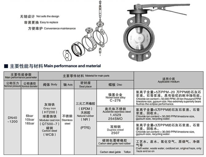 電動(dòng)脫硫蝶閥主要結(jié)構(gòu)由閥體,閥瓣,閥座,閥桿及傳動(dòng)操作機(jī)構(gòu)等部件組成,閥座采用可脫卸構(gòu)造,并可根據(jù)不同介質(zhì)的物理化學(xué)特性,選用相應(yīng)的耐溫,耐腐蝕,耐光,耐老化材質(zhì)。