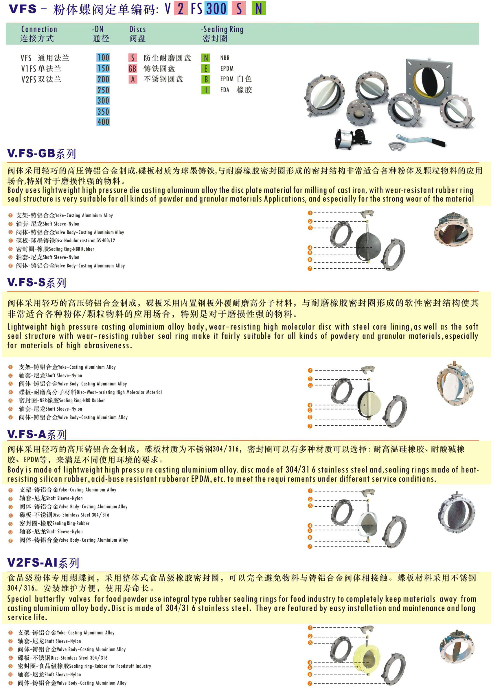 粉體蝶閥,粉末蝶閥,水泥蝶閥產(chǎn)品別名:蝴蝶閥、連接形式:法蘭、材 質(zhì):鑄鋁合金、公稱通徑:100-400(mm)、驅(qū)動(dòng)介質(zhì):壓縮空氣、壓力范圍:0.2bar(3psi)、適用溫度:80℃、主體材料:半閥體為鋁合金材料,旋轉(zhuǎn)閥體采用耐磨高分子材料制作、結(jié)構(gòu)形式:垂直板式 、傳動(dòng)形式:氣動(dòng)、密封形式:軟密封型、 氣動(dòng)執(zhí)行器配置:CP101、CP126型是專門(mén)用于粉體、顆粒物料的工業(yè)產(chǎn)品。粉體蝶閥閥體橡膠密封圈形成的軟性密封使其非常適合各利粉體,顆粒物料的應(yīng)用場(chǎng)合,特別是對(duì)于磨損性強(qiáng)的物料。在需要重力落料或氣力輸送的粉體,顆粒物料處理系統(tǒng)中,粉體蝶閥常常被安裝在料斗,筒倉(cāng),螺旋輸送機(jī)出口以及氣送管路上。根據(jù)應(yīng)用要求,可以單獨(dú)選配驅(qū)動(dòng)手柄或者氣缸驅(qū)動(dòng)套件。