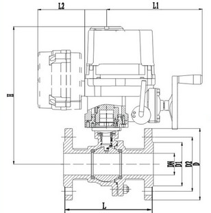 電動(dòng)帶手輪球閥尺寸圖: