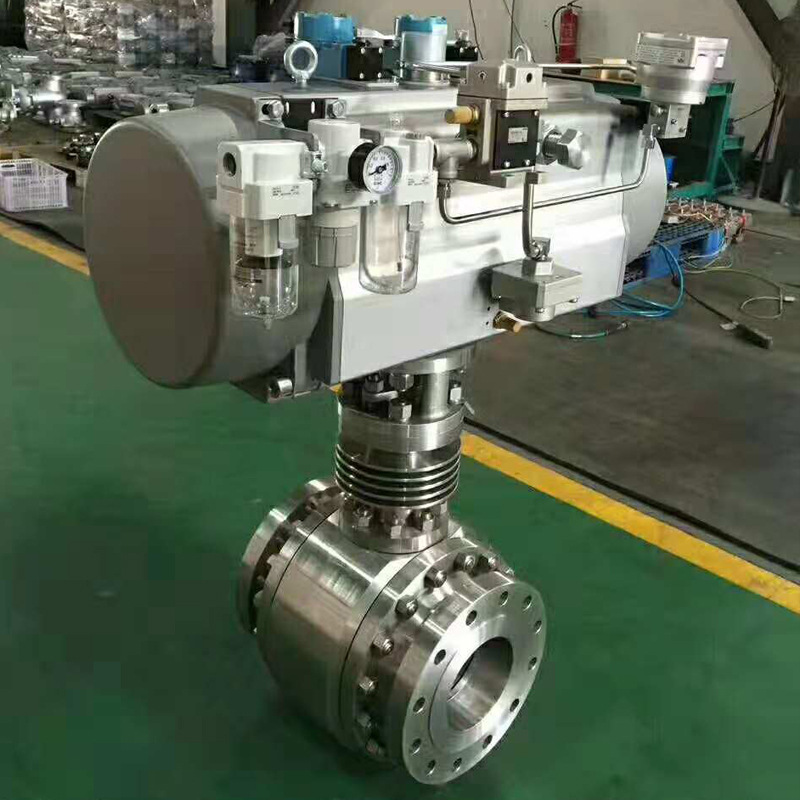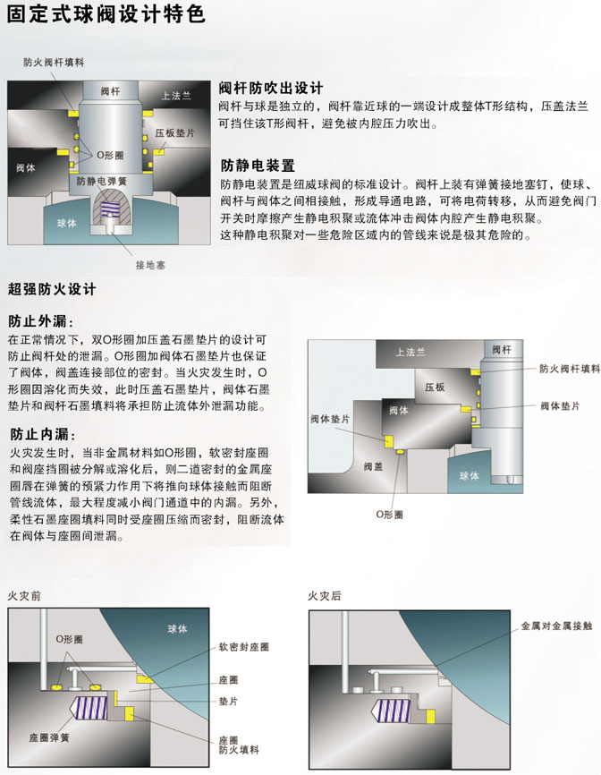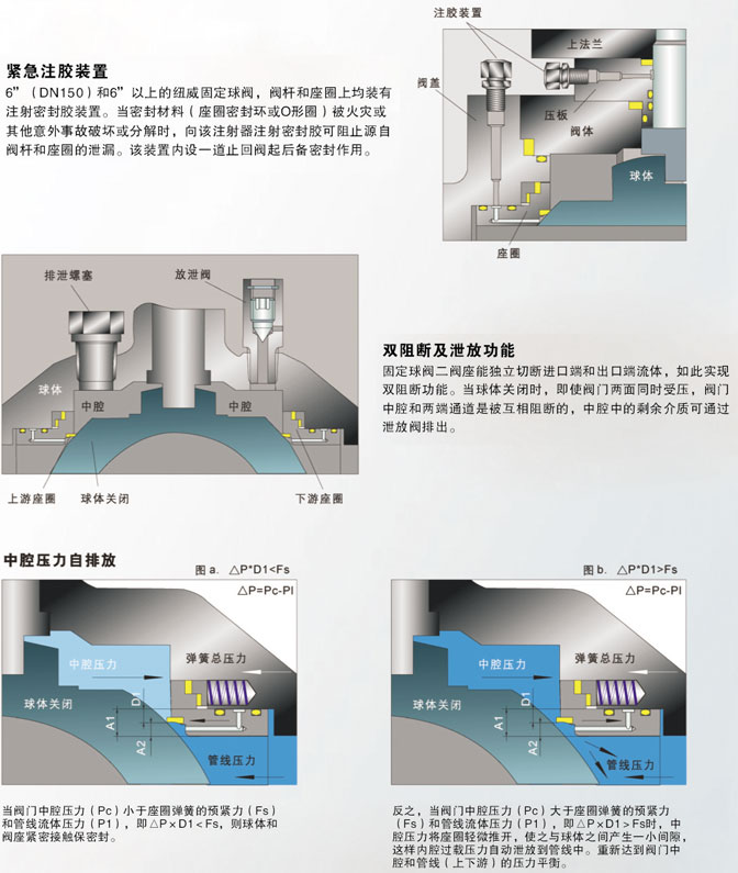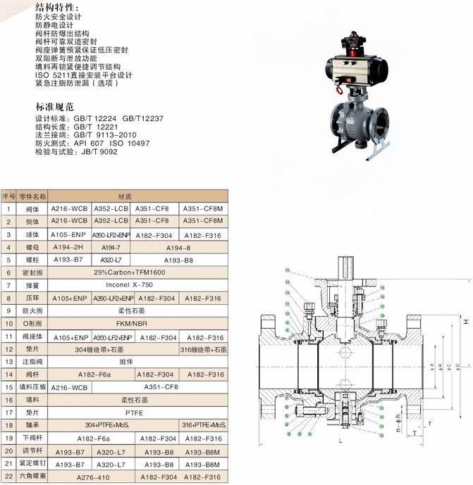 氣動(dòng)固定式球閥,氣動(dòng)固定式法蘭球閥:兩片式和三片式固定球閥又稱測裝分體式球閥,將閥體沿與閥門通道軸線相垂直的截面分為不對稱的左右兩半,它在管道上主要用于切斷、分配和改變介質(zhì)流動(dòng)方向。它的樞軸結(jié)構(gòu)準(zhǔn)確的球體位置。標(biāo)準(zhǔn)閥座采用彈簧結(jié)構(gòu),將閥蓋推向球體,好的低壓密封性能。該球閥閥前、閥后閥座都能密封, 即所謂雙向密封特性,利用自帶的排放閥,閥體中腔可向外排放。樞軸采用防爆出保護(hù)結(jié)構(gòu),低摩擦系數(shù)的軸承等?煽啃愿,用途廣泛,價(jià)格合理等。