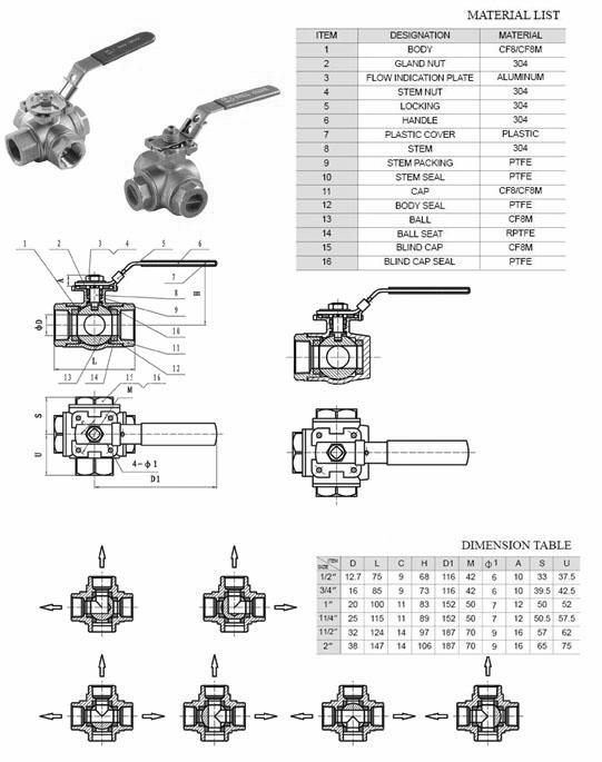 (2)、三通球芯分T型和L型,使用壽命長,流通能力大,阻力小。