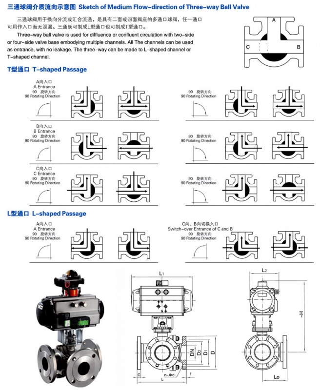 氣動三通球閥_(T型,L型)氣動三通球閥實物圖片