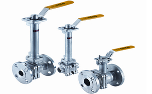 低溫球閥則是可在溫度低于-196℃的工況下使用的球閥,主要用于乙希,液化天然氣等化工裝置上。輸出的液態(tài)低溫介質(zhì),而且在升溫時(shí)要?dú)饣?氣化時(shí),體積膨脹數(shù)倍,為了適應(yīng)自動(dòng)化控制的需求,往往會(huì)根據(jù)情況使用加長桿,以避免低溫對(duì)驅(qū)動(dòng)機(jī)構(gòu)的影響。如下圖所示,低溫球閥的實(shí)際應(yīng)用。