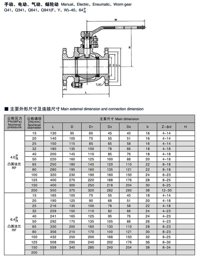 法蘭球閥,Q41F法蘭式球閥尺寸結(jié)構(gòu)圖: