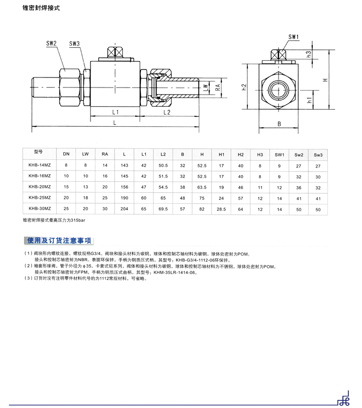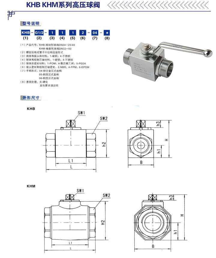 ① 系列代號(hào):KHB高壓球閥(BKH高壓球閥)系列、KHM高壓球閥(MKH)系列高壓球閥