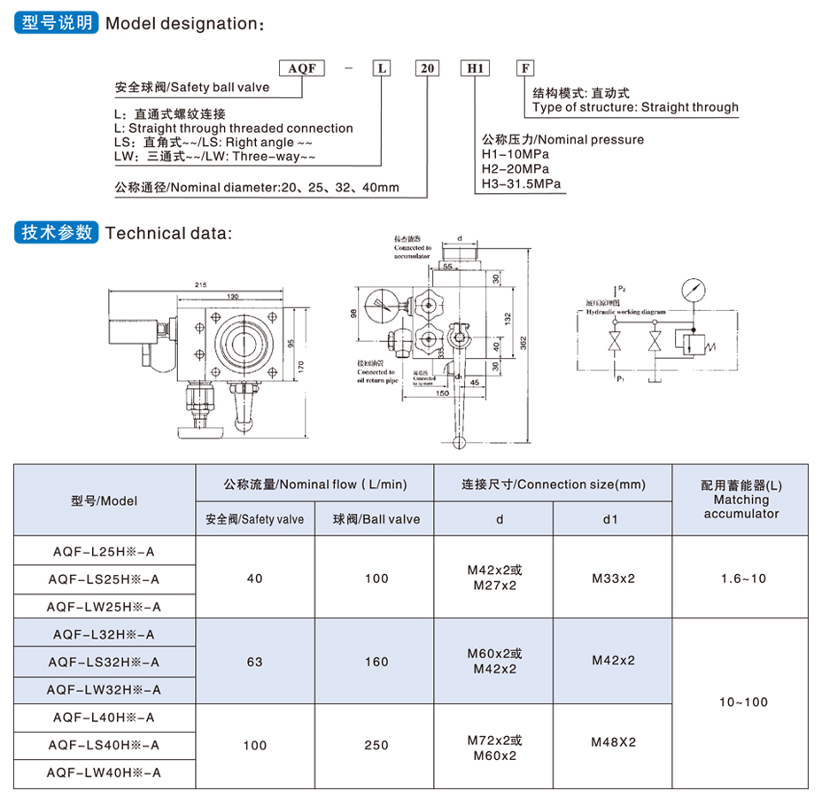 AQF安全球閥,AQF型安全球閥主要用于液壓一囊式蓄能器作為安全,斷流和卸荷的蓄能器附件。安全閥可保持系統(tǒng)中的壓力調定值。當壓力調定值時,安全閥開啟,防止系統(tǒng)過載,特別是封閉系統(tǒng)中的蓄能器更不可缺少,而防止外負荷的突然加大所造成系統(tǒng)的危害。特點:結構緊湊、體積小,安全方便,操作簡單。