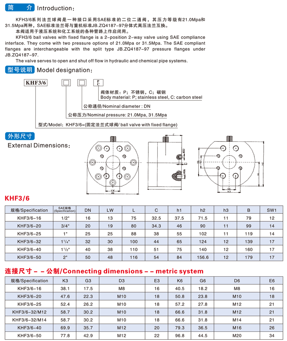 KHF3/6固定法蘭球閥,SAE標(biāo)準(zhǔn)具有以下特點(diǎn):