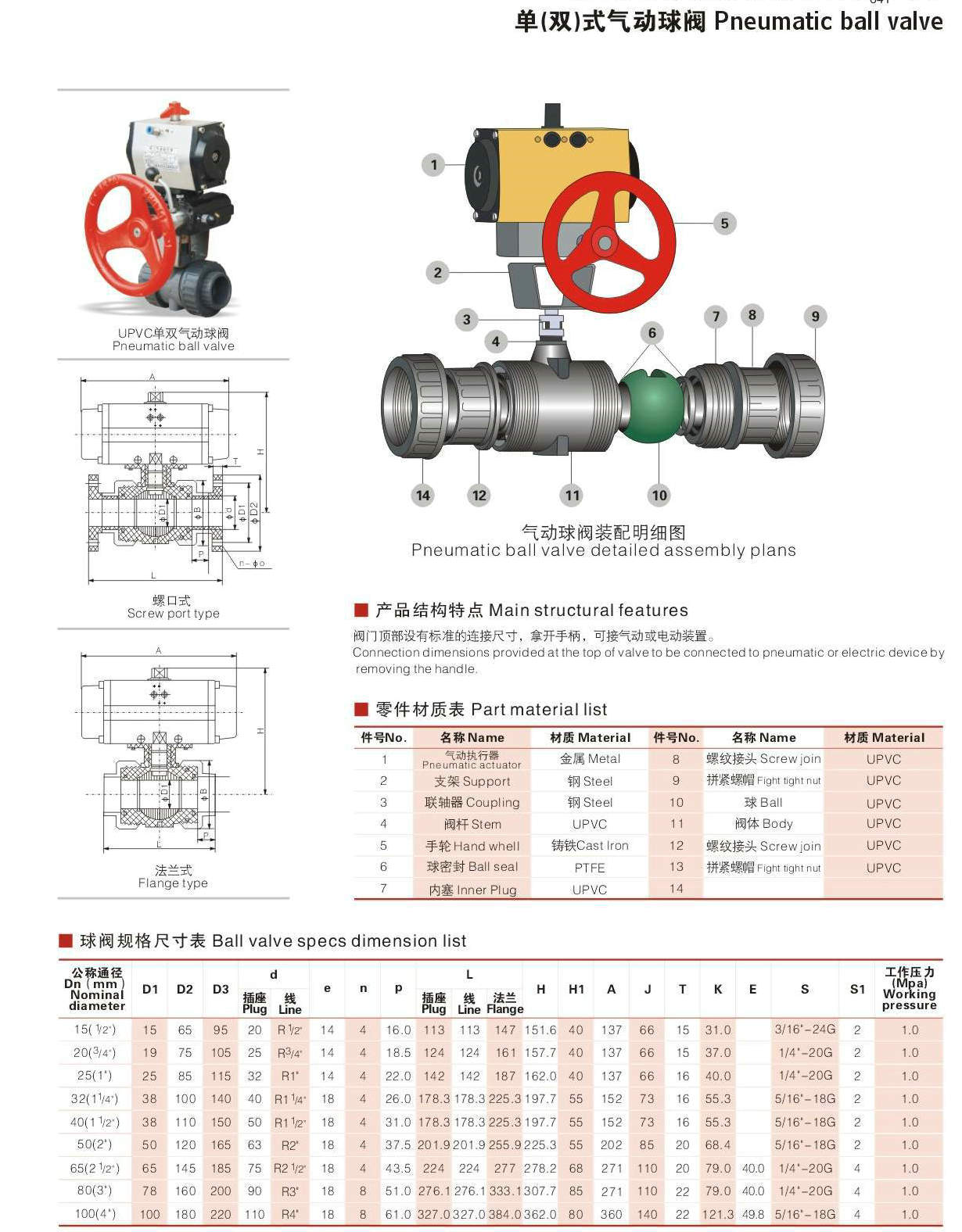 氣動塑料球閥_氣動(UPVC,CPVC,PVC,PVDF)球閥參數(shù)尺寸圖: